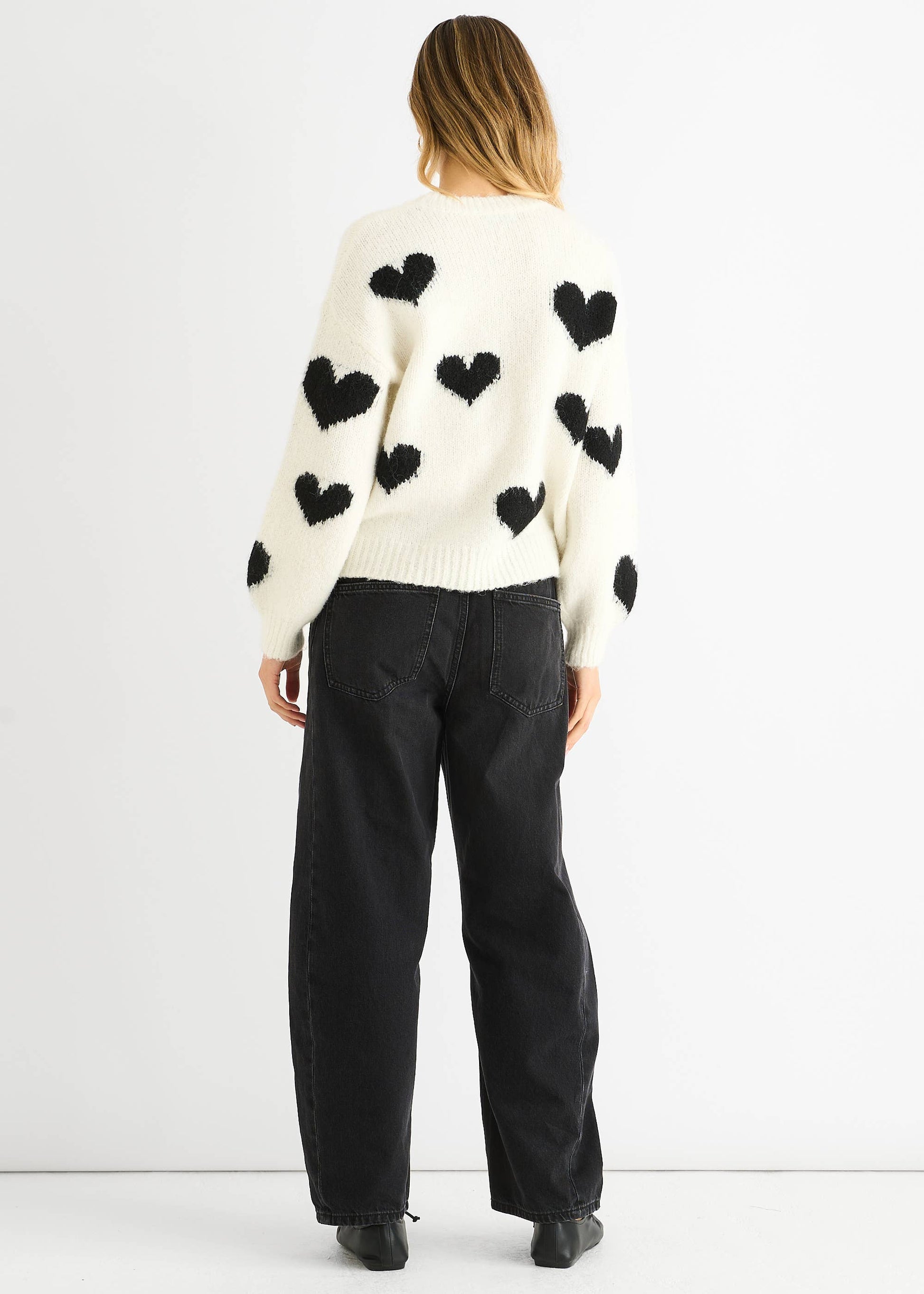 Cream Contrast Heart Oversized Knit Jumper - New Tags