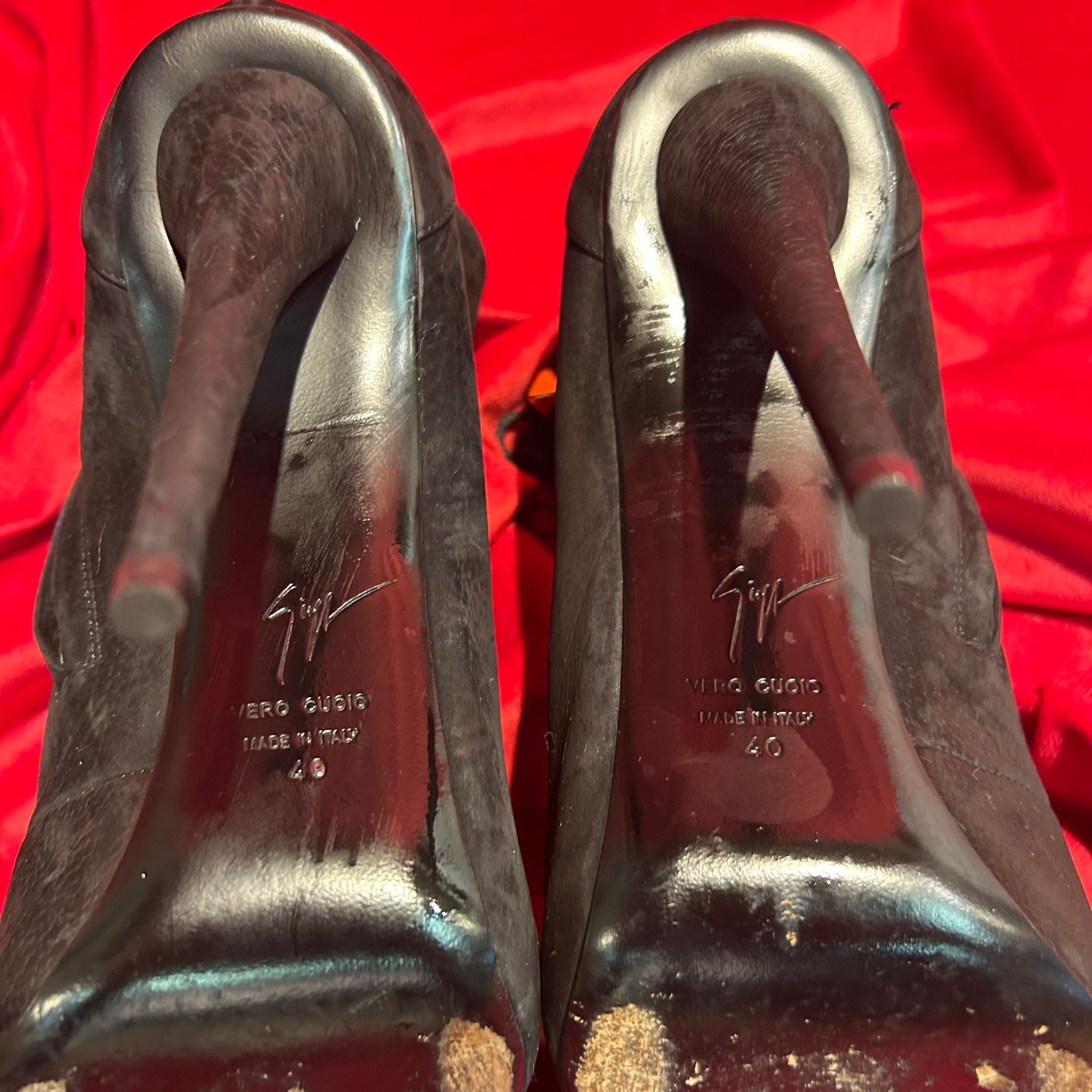 Giuseppe Zanotti Black Suede Heels With Gold Studs - Size UK 7 - Preloved