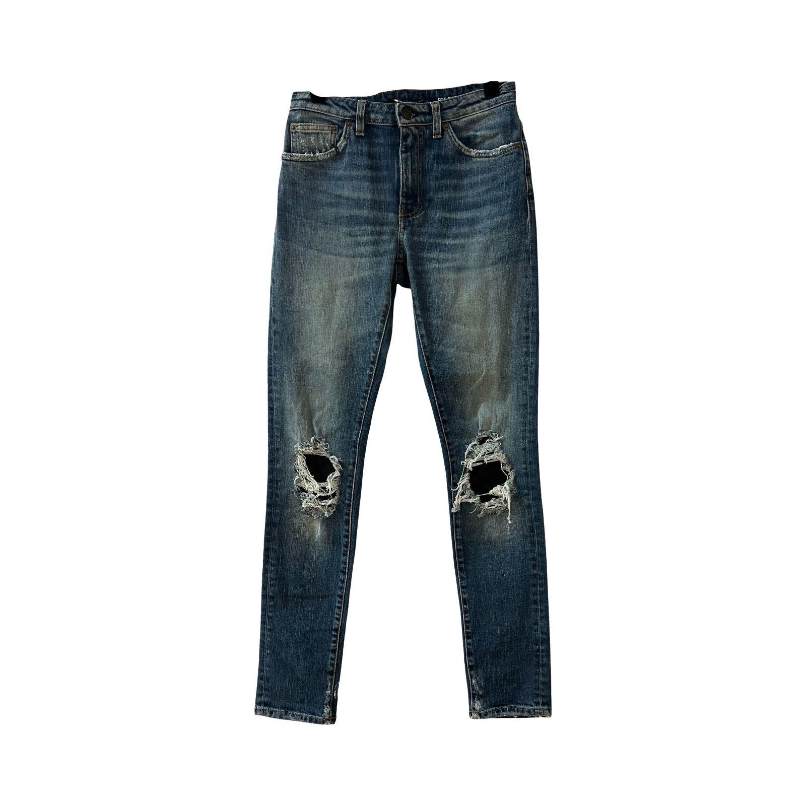 Saint Laurent Mid Blue Distressed Skinny Jeans - Size W28