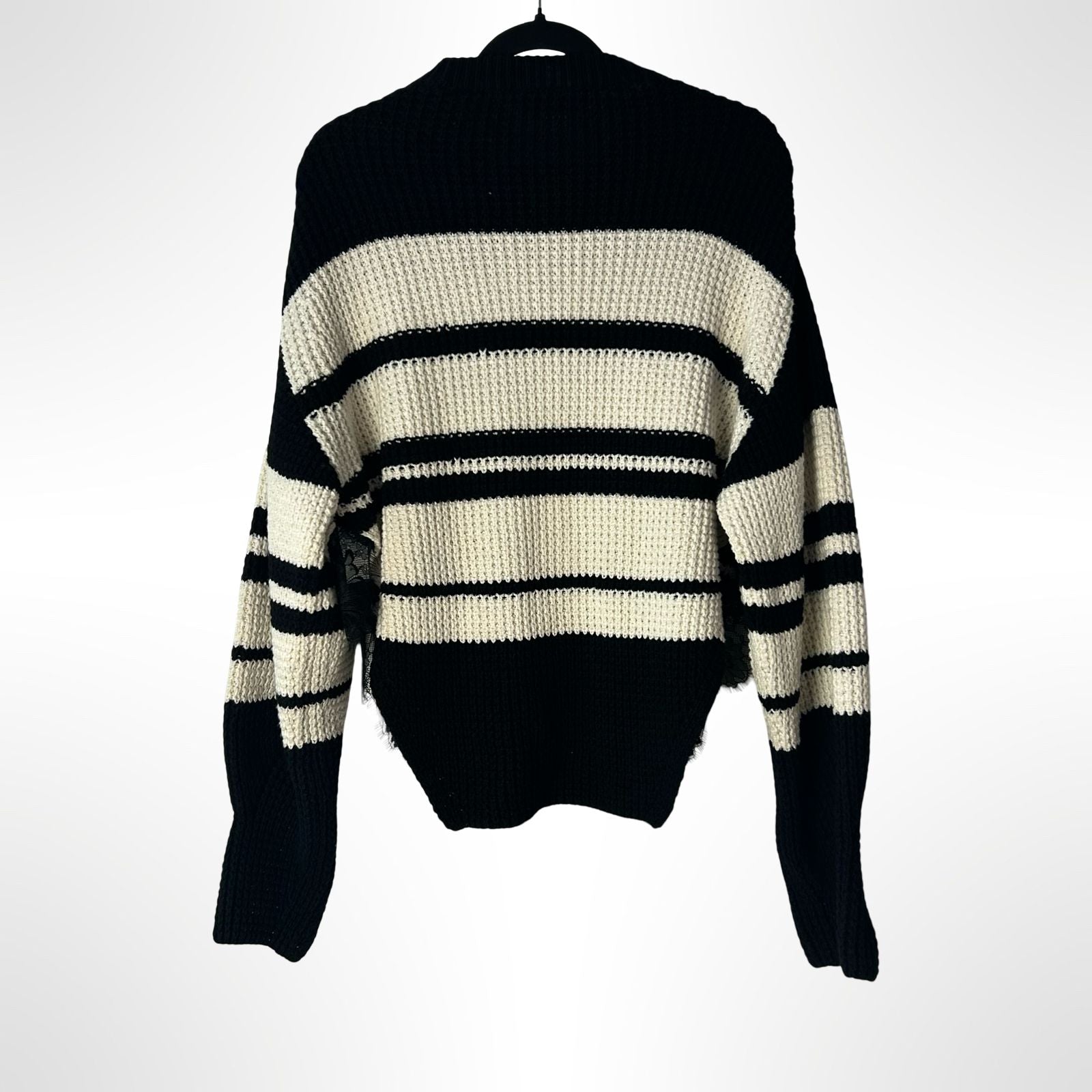 Stunning black and white stripe knitted jumper with lace trim.